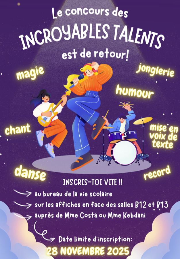 Le concours des Incroyables Talents est de retour au collège ! Inscris toi vite !