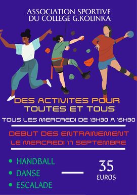 Par CELINE REFALO, publié le lundi 1 septembre 2025 14:27 - Mis à jour le lundi 1 septembre 2025 14:39Bienvenue à toutes et tous. Voici un teaser réalisé par les élèves de l'AS danse. Cela te donne envie de participer? Alors rejoins nous tous les mercredis de 13h30 à 15h30 au collège! -